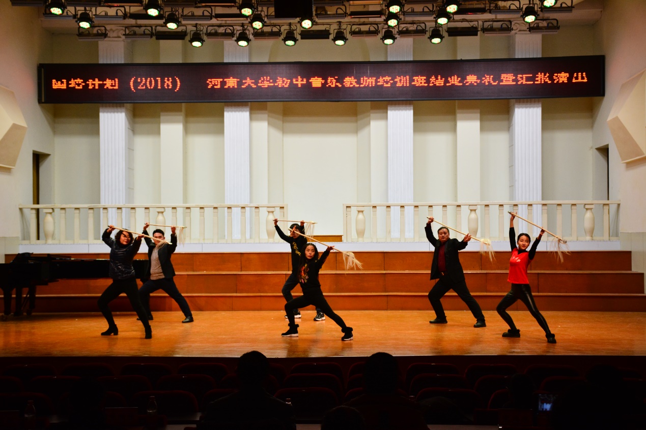 汇报演出节目精彩纷呈,形式多样。各位学员运用合唱、独唱、器乐演奏,以及戏曲身段水袖表演与融合广播体操及豫剧程式化、虚拟化元素的豫剧韵律操等多种形式,展示了在本期培训班的所学所悟,演出气氛热烈,高潮迭起。汇报演出在全体领导师生合影留念中落下帷幕。