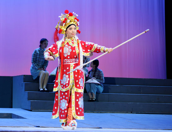 巨幕开启,硝烟弥漫的朝鲜战场映入眼帘。一曲志愿军血战敌军战机的舞蹈,一下子把人们拉回到了建国初期抗美援朝保家卫国的激情岁月。敌军坚船利炮,可是新中国战斗机屈指可数,为了响应国家号召,常香玉萌生了通过义演筹款捐飞机的想法。虽然剧社内部有人担心募捐无法完成,会“砸牌子,丢名声”,可常香玉依然内心坚定:“我要捐飞机,我要捐飞机,我要捐飞机!”常香玉扮演者黄慧慧连唱三声,一声比一声高亢,一声比一声坚定,她用自己的坚持和满腔热血终于换得全剧社成员异口同声的一个“中”!西北局领导得到消息后,不仅表示支持!并专门派人上门指导。还提议创作一个象征性的剧目。由此,《花木兰》诞生了!当常香玉扮上花木兰的戏服,唱一曲“谁说女子不如男”的时候,现场掌声雷动,欢呼声不断。