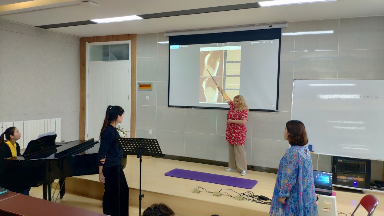 韩梅教授、黄慧慧教授带头亲自上课示范,学习氛围浓厚、气氛热烈,师生纷纷表示受益匪浅。交流学习期间,Michela Sburlati教授与师生结下了深厚友谊,她在教学课堂上深情的对大家说:“我每次来到开封,都会得到巨大的感动、快乐,当然还有悲伤。感动是大家对科学真理的渴望和严谨认真的学习态度,快乐是大家的声乐演唱表演水平都得到不同程度的提高,悲伤是离开的时候我将会非常想念大家。开封早已成为我的第二故乡,我将尽我最大的努力,永远不辜负大家对我的爱和信任!”