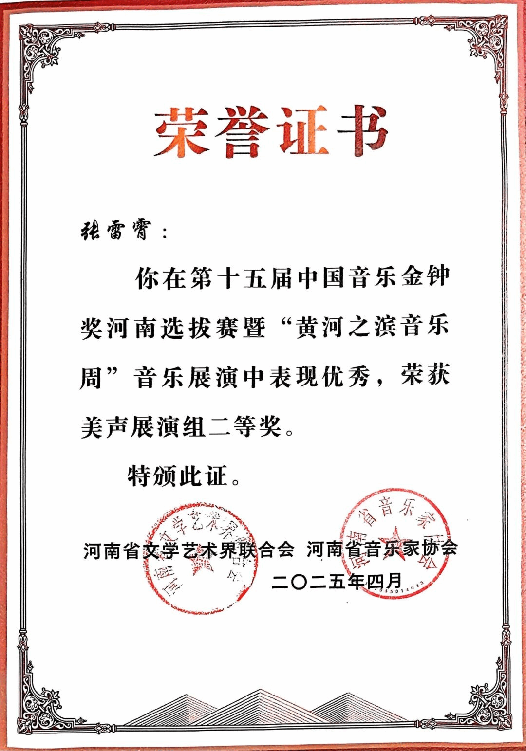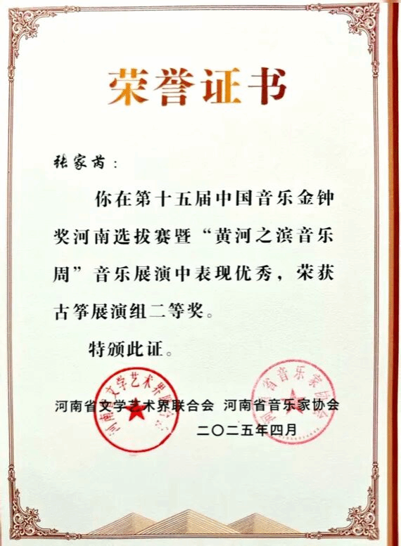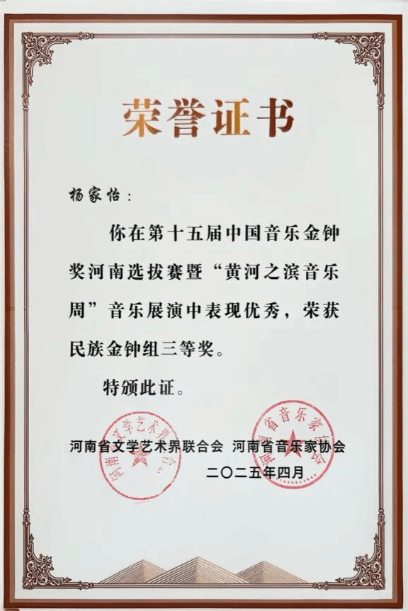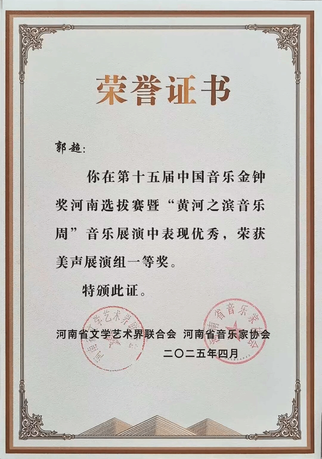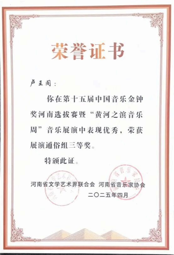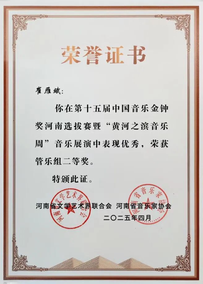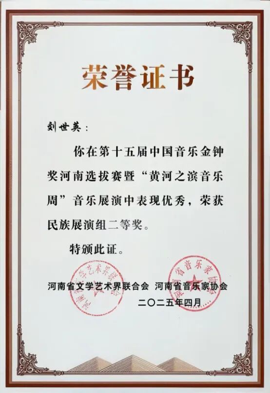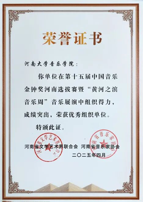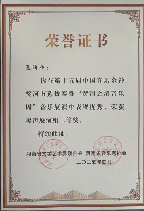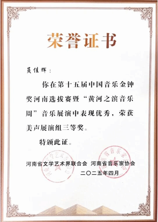 2025年4月24日,由河南省文学艺术界联合会、河南省音乐家协会共同主办的第十五届中国音乐金钟奖河南选拔赛暨“黄河之滨音乐周”在河南周口、洛阳圆满落下帷幕。此次选拔赛汇聚了全省各地的优秀人才,为观众们带来了一场场精彩绝伦的音乐盛宴。