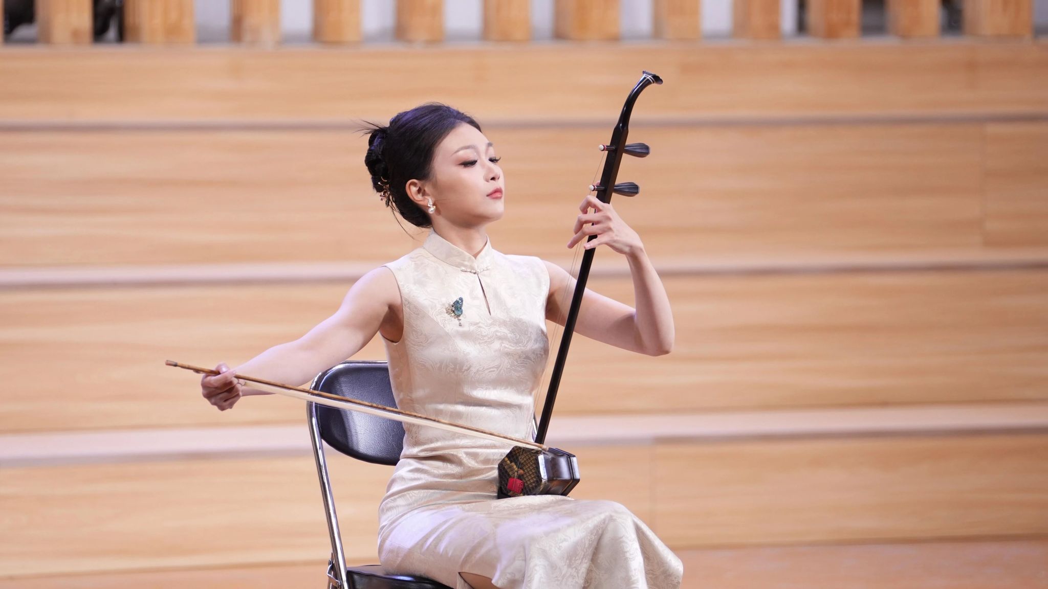 紧接着,郑博尹与卢琪、丁坤两位老师联袂演绎了当代二胡原创作品《梦寻长安》,悠扬的琴声勾勒出盛世长安的风貌,传递出对当代华夏发展成就的礼赞之情。