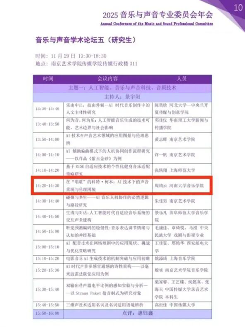 师生论文入选并作专题发言,推动了人工智能时代音乐与声音艺术领域的理论研究与实践融合,展现了学院的学术探索与成果。