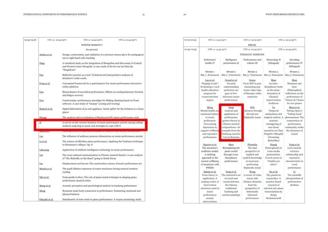 硕士生姬孟琪、宋梓园的论文入选会议并作报告交流,会议发言分别聚焦中国音乐表演姿态理论与音乐表演焦虑,研究成果获国际同行认可,展现了学院师生在音乐表演科学领域的研究实力。