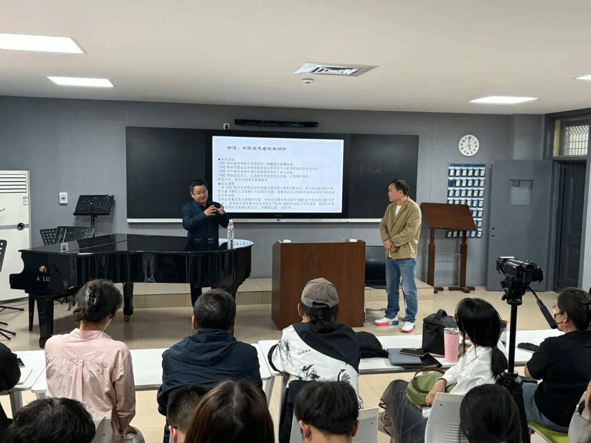 师生作题为“浅谈中国声乐作品演唱中科学性与时代性、民族性的统一”学术讲座。