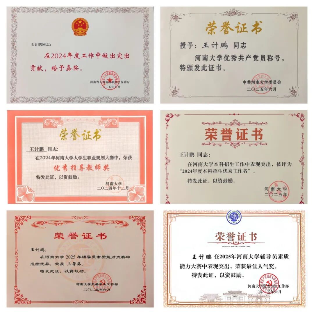 在王计鹏的精心指导与严格要求下,他所带的2023级实现了学业、素质、创新的全面突破。从2025年5月的校级二等奖,到6月的一等奖,再到9月荣获中国国际大学生创新大赛河南赛区三等奖,他指导的费雪儿、冯笑涵同学实现了赛事成绩的“三级跳”,极大地提升了学生的创新精神和实践能力;在他的精心带领下,整个2023级展现出积极向上、团结奋进的良好风貌,荣获2024-2025学年国产色情