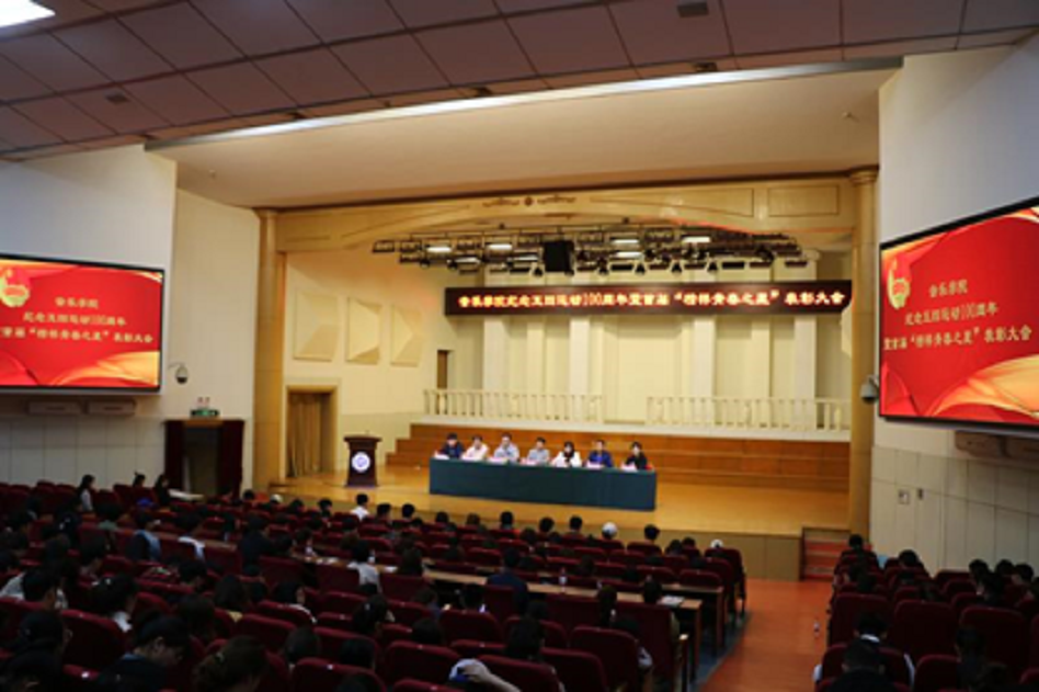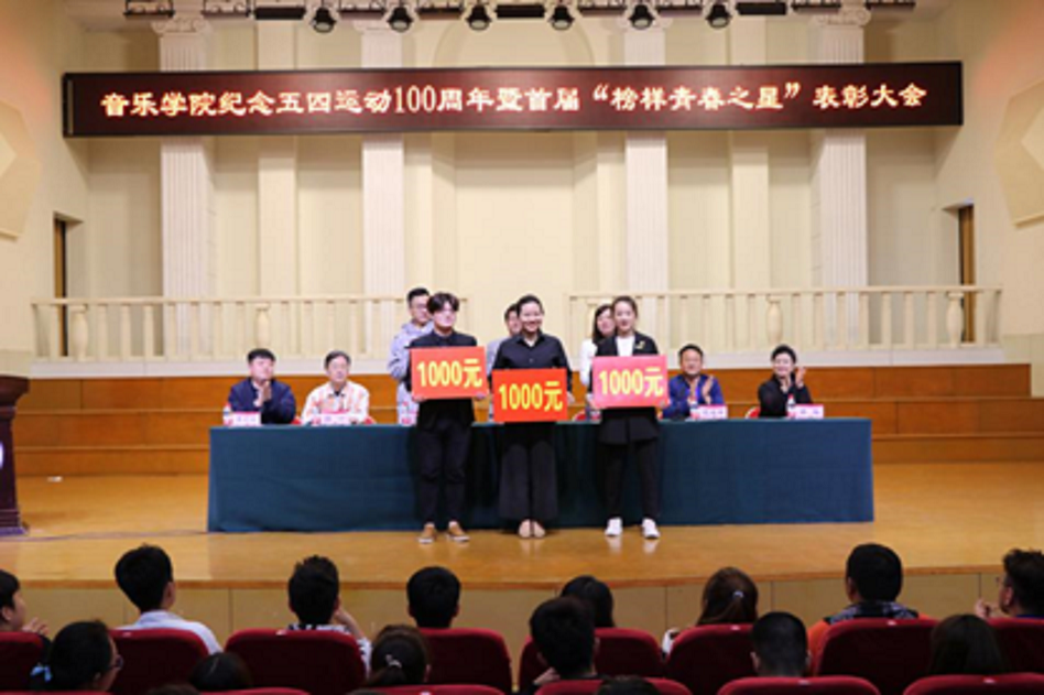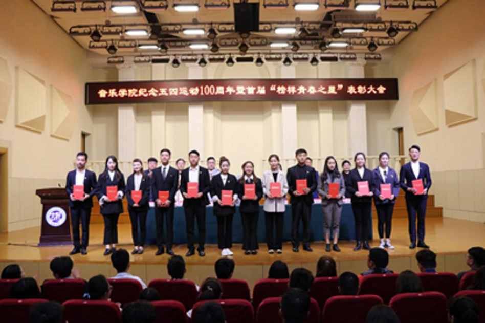 在音乐厅举行纪念五四运动100周年暨首届“榜样青春之星”表彰大会。校团委书记沙莎、国产色情