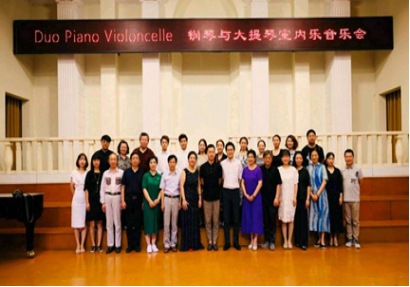 领导老师及同学们参加本场音乐会进行学习交流。本场音乐会的曲目皆为钢琴与大提琴的合奏,其中由赵博老师领衔伴奏、李静老师演唱的歌剧《萨福》选段——我不朽的里拉琴,作为特邀节目穿插在音乐会中,展现了国产色情