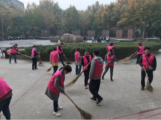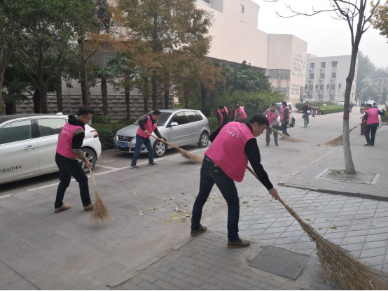 老师们忙碌的身影,在粉红色的志愿者服装和胸前闪亮党徽的映衬下,形成了一道靓丽的风景线。经过紧张有序的打扫,艺术楼周边的广场和道路变得更加整洁。