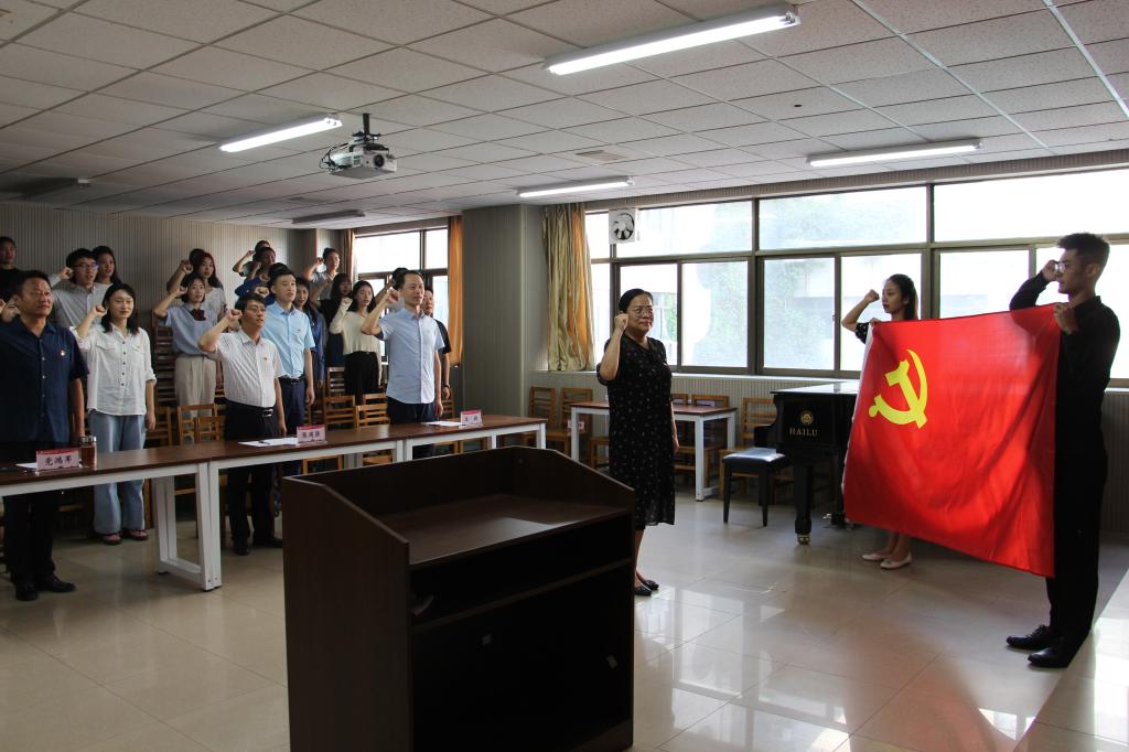 9月8日中午,学院在224教室举行2020年上半年新党员入党宣誓仪式,张国强、党鸿军、王新等院领导和全体支部书记,以及27名新党员同志参加了宣誓仪式,仪式由党鸿军主持。会上,新党员和老党员代表做了发言,张国强代表学院党委向新党员寄语,希望新党员牢记党员身份,弘扬伟大抗疫精神,争做新时代优秀党员。仪式结束后,全体领导班子成员和新党员同志在马可广场合影留念。