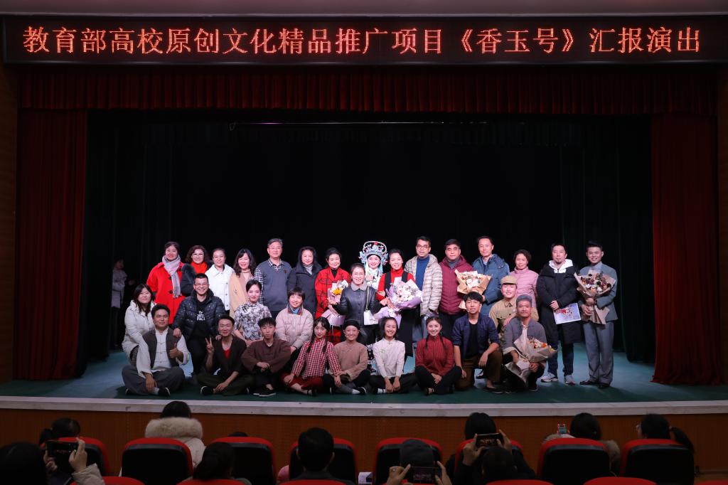 与北京饕戏戏剧文化有限公司联合申报并成功获批国家艺术基金大型舞台资助项目。2018年9月15日、16日晚,国家艺术基金项目大型原创民族音乐剧《香玉号》在我校百年礼堂隆重首演,并进行了专家研讨,后入选高雅艺术进校园项目,在省内外巡演20余场,受到广泛好评。2019年1月,该项目入选教育部第二批“高校原创文化精品推广行动计划”。