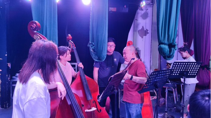 岳兵老师在几天的排练中,带领低音提琴声部进行学习,传授了自身的乐团经验和技术指导,国产色情