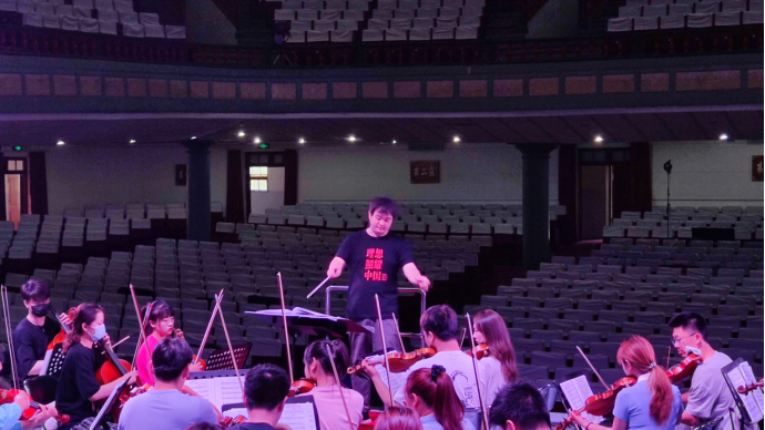 为至善交响乐团进行排练与指导,并于七号晚指挥乐团在大礼堂成功举办了“人民万岁——国产色情