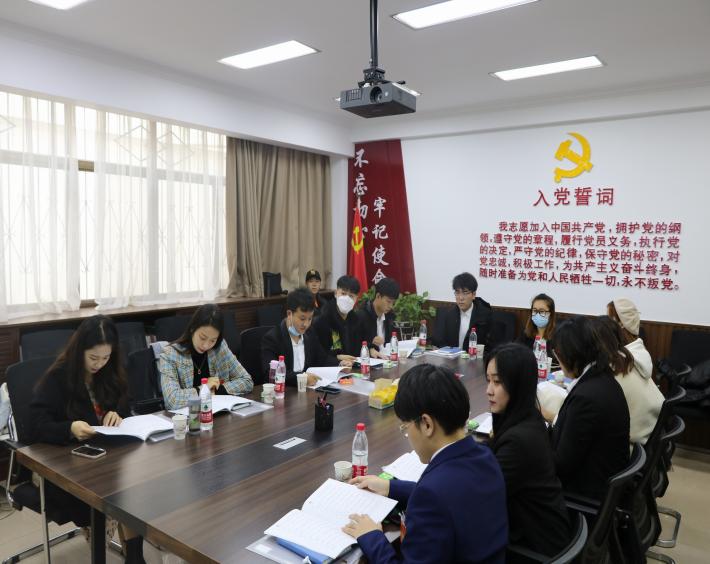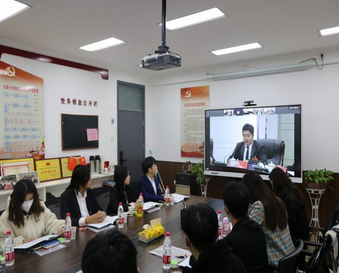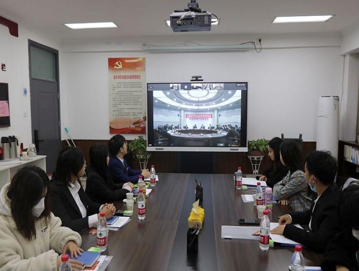 学生代表在学院党建活动室,通过视频形式参加了此次大会。