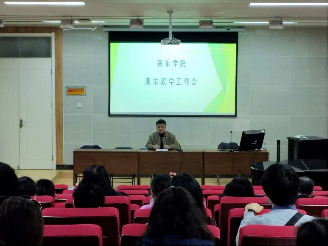 王聚伍在讲话中表示,一流课程建设是推动一流专业建设的基础。近年来,学院在一流专业建设方面取得了显著成效,四个本科专业全部获批省级一流专业,其中音乐学专业获批国家一流专业。做作为“金专”基础的“金课”建设是学院各项工作的重心,希望各位老师都能够树立课程建设新理念,创新课程教学手段和方法,加强课程思政内容的融入,合理利用线上教学资源不断激发学生学习热情和学习主动性,将现代教育技术与课程教学深度融合,推动教学方式方法的变革,让课堂活起来、让学生动起来。