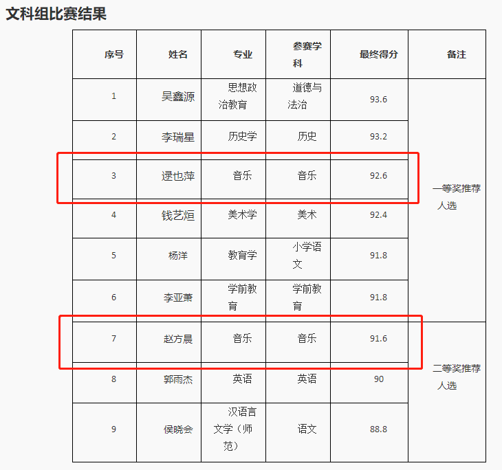 音乐学(教师教育)专业学生自2007年首次参加这项省级比赛,陈俊俊、程通、郭芮冰、聂垚、章特荣、曲子瑶、李昱瑶、毛淑湘、乔君阁、逯也萍、赵方晨等同学都曾获得校级特等奖、一等奖和省级一、二等奖,共计10余人次,尚永娜老师连续十五年辅导学生参加比赛,多次获得优秀辅导教师奖,国产色情