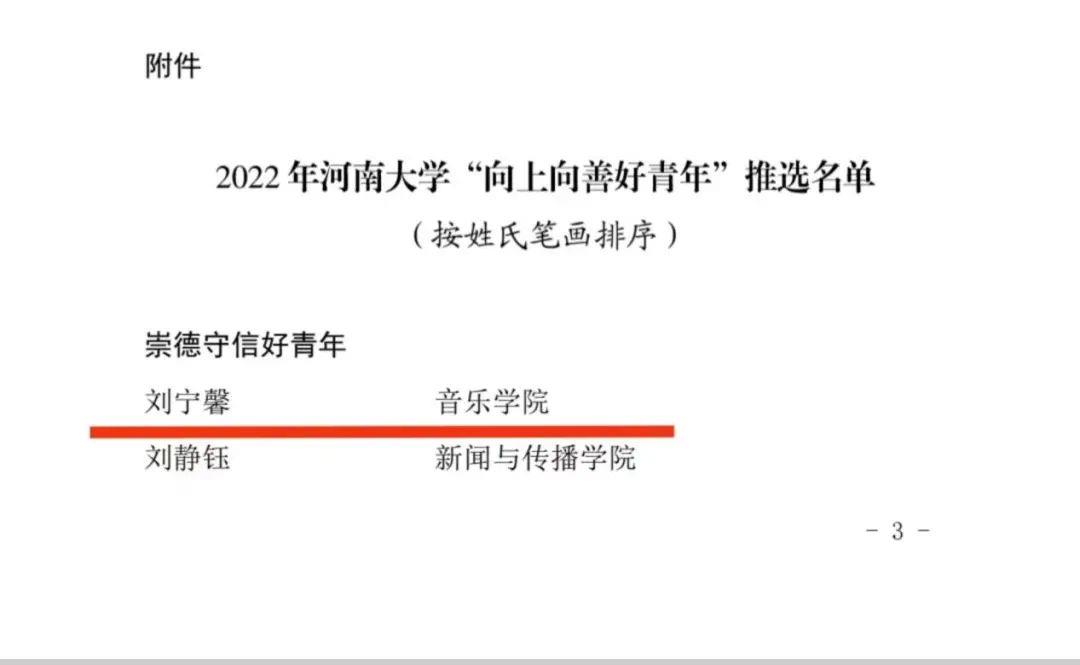 刘宁馨同学荣获“崇德守信好青年”的称号。