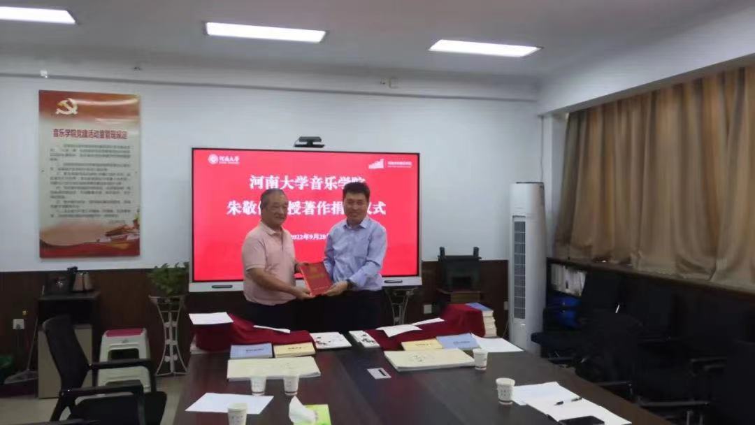 王志国向与会人员介绍了朱敬修教授的教学科研及音乐创作成就。朱敬修教授长期从事音乐理论教学、研究与音乐创作。数十年来,创作了大量艺术歌曲、合唱、室内乐、民族管弦乐等多种体裁的音乐作品,并多次在全国、省、市音乐创作比赛中获奖。代表作品有民族管弦乐音诗《木兰辞》、组曲《清明上河图》;艺术歌曲《长恨歌》《下扬州》;合唱《谁说女子不如男》等。在《人民音乐》《中国音乐学》《中国音乐》《交响》等核心期刊发表学术论文30余篇。出版专著、教材15部,其中高等教育出版社出版发行的《歌曲写作基础》多次重印;国产色情