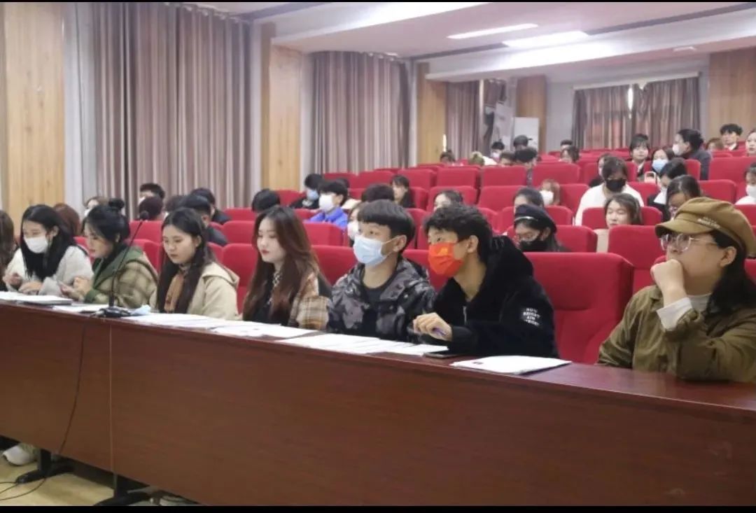 学术报告厅举行了2022年团委学生组织部长层换届大会,本次会议由线上线下相结合的方式举办,院团委负责人赵瑞新老师和学生组织主席层出席了本次会议。