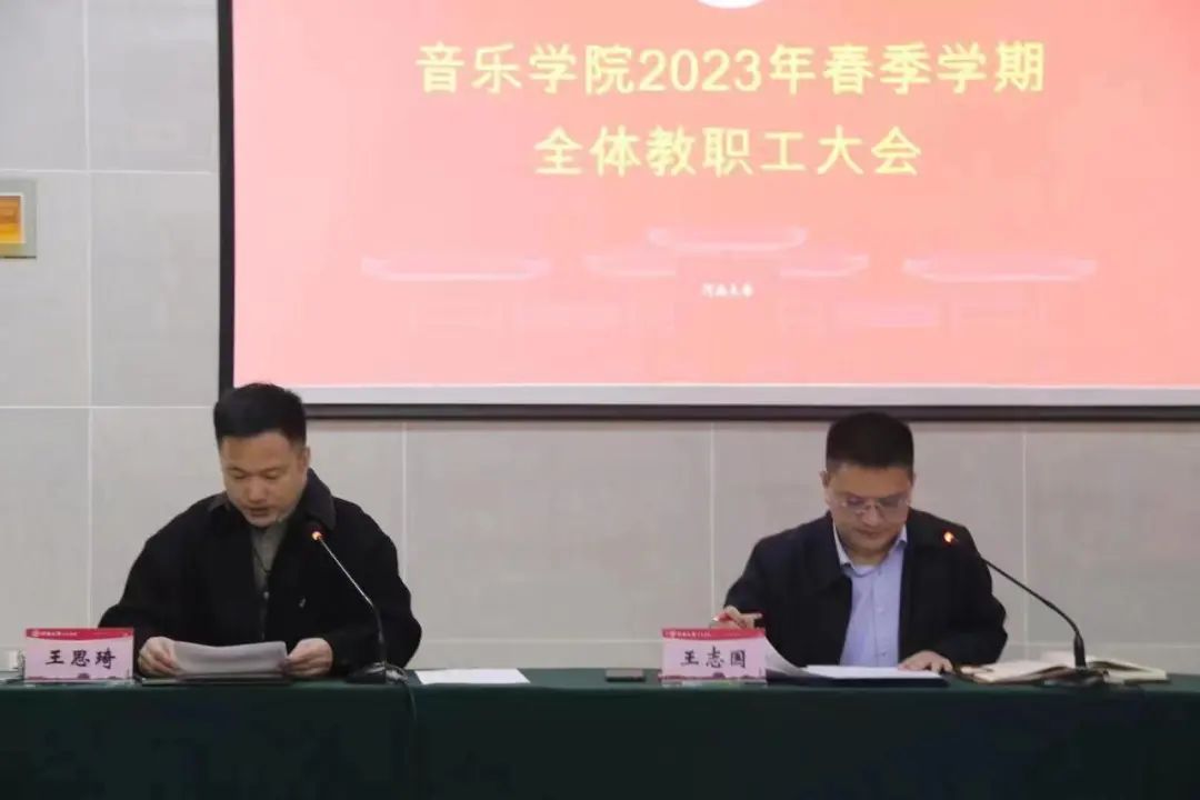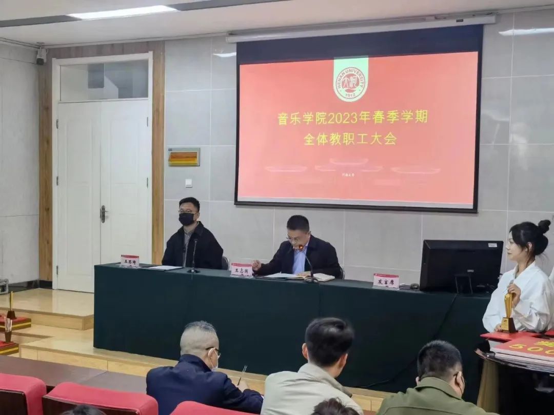 在学术报告厅隆重召开2023年春季第一次全院教职工大会。院党政领导班子成员及全体教职工参加了会议。会议由学院党委书记王志国主持。