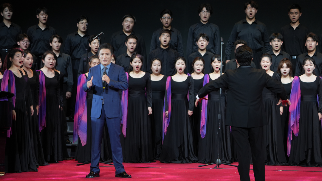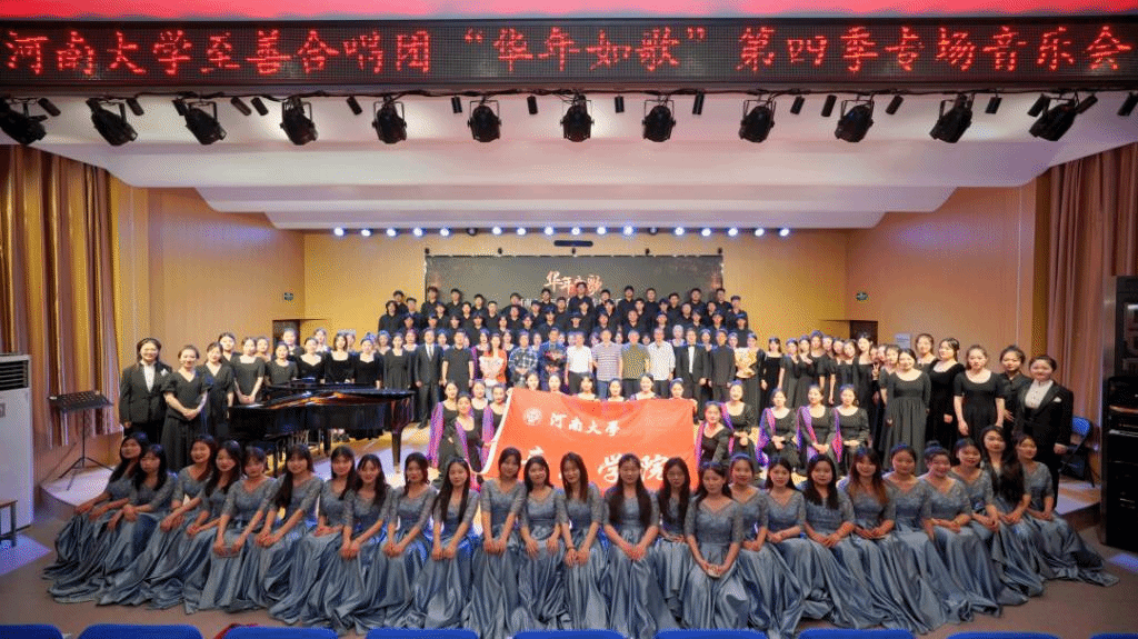 本场音乐会汇集了袁凯老师执教的五支合唱团:至善室内合唱团、至善混声合唱团、至善女声合唱团、21级音乐学教学班、开封市光之翼童声合唱团,他们倾情呈现了16首风格多样的合唱作品。在《世界恬静落来的时》温润的旋律中,音乐会拉开了序幕,通过《如梦令》《将进酒》两首曲目一静一动的对比,现场观众的热情逐渐被点燃。《夜晚的星》《如果明天就是下一生》《少女》温暖的旋律洗涤心灵,女声合唱Can you hear me、Wana Baraka、《春潮》《蒹葭》或温软细腻,或激情澎湃,男声合唱《炉中煤》《满江红》雄浑激昂。混声合唱《爱在百年》将音乐会推向了高潮,至善合唱团的全体成员与光之翼童声合唱团的小朋友们分布在舞台上下,呈U型环抱观众,在环绕立体声的声场效果中,大家用歌声把爱意传递。在作品《领航》中我们感受到中国共产党的光辉历程,作品《因为有你》(领唱:声歌系副主任张宗伟副教授)道出了所有河大学子对母校的深深眷恋之情。最后现场观众满怀激动之情,与至善合唱团高唱《国产色情