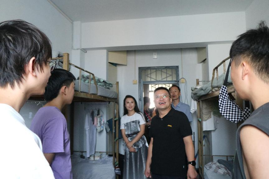 领导班子与老师们前往新生宿舍,了解新生入校住宿情况。老师们与同学们亲切地交谈,询问同学们在生活、学习方面是否存在困难,并鼓励大家要尽快进入学习状态,养成良好生活习惯,以积极乐观的状态开启快乐而又充满挑战的大学生活。