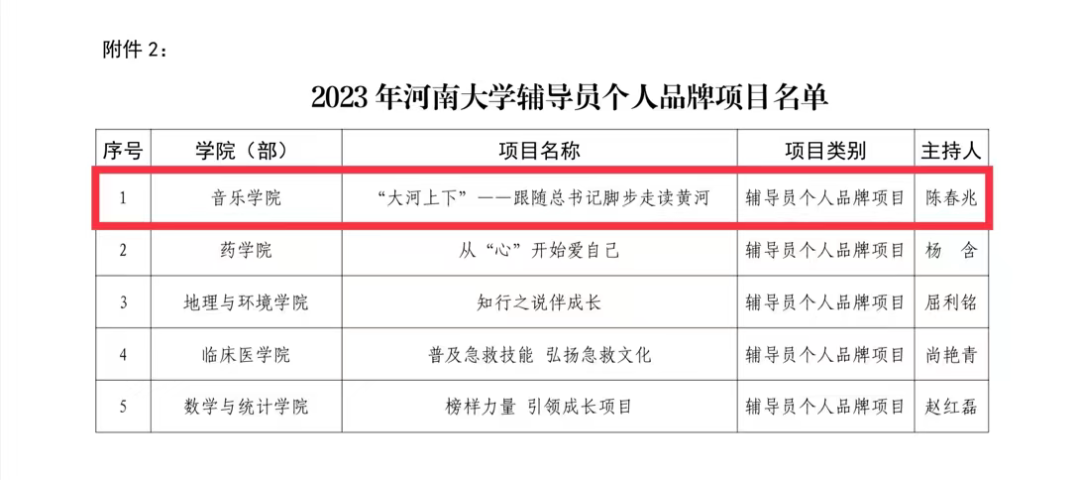 学生工作精品项目”,辅导员陈春兆主持的“大河上下——跟随总书记脚步走读黄河”获批辅导员个人品牌项目。