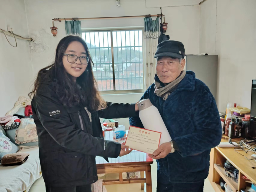 2023级音乐学专业的卢豫跟随浙江省诸暨市东兴村村长兼书记卢球光开展慰问退伍老兵活动。卢豫同学回忆到:“我们来到退伍老兵张雲清的家中,这位爷爷热情款待了我们。我们说明是代表政府慰问的来意,我能感受到爷爷明显激动了起来,一直说着感谢政府和国家。我问到,您对于参与的战役有什么感触吗?张雲清同志说,这些年来见证了国家的发展,感谢国家和政府还记得我......我特别感动!我们不会忘记他们,国家和政府也不会忘记他们!每代人有每一代人的任务,我们没有办法感同身受经历那个战火纷飞的年代,但是新时期来临,互联网的时代已经到来,我们作为新时代大学生更应该铭记、传承他们的故事和精神,激励一代又一代的人为中华民族复兴而奋斗!”