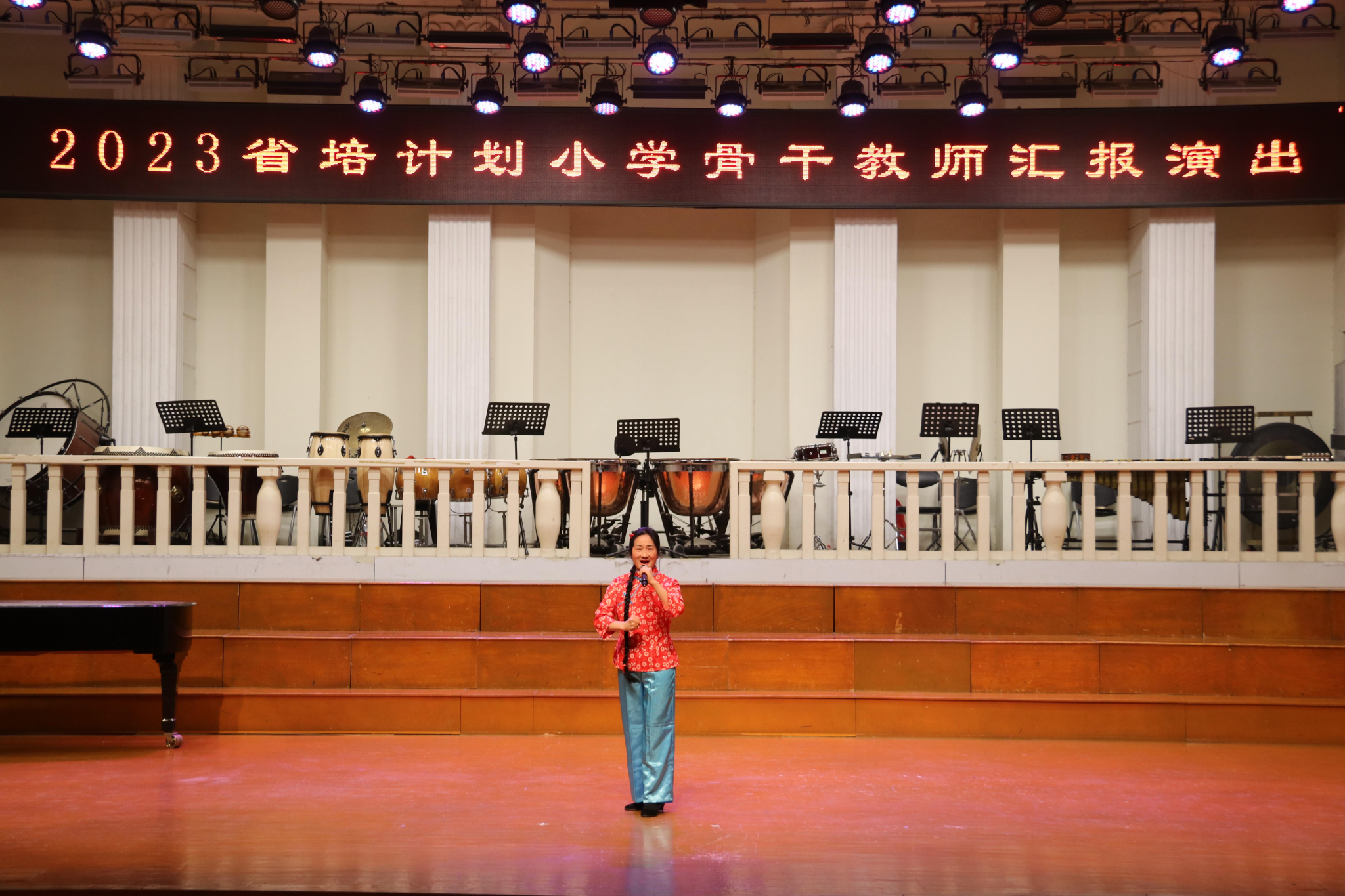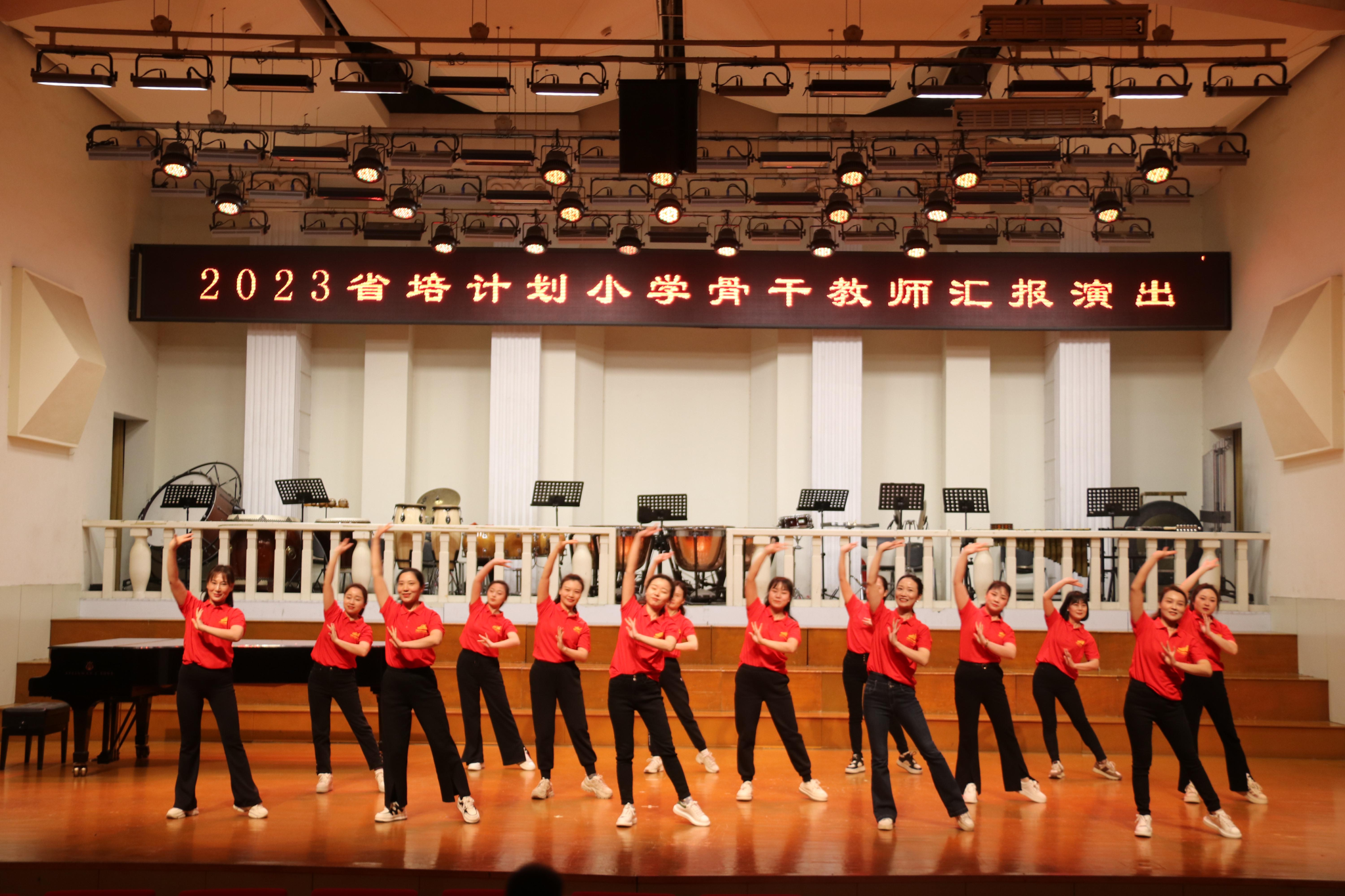 汇报演出在《豫剧韵律操》的精彩表演中拉开帷幕。 本次汇报演出风格多样,精彩纷呈。演出围绕培训课程内容和中小学音乐教师技能重点,内容涵盖声乐独奏、器乐演奏、戏曲表演、舞蹈表演、合唱以及朗诵等,较好展示了这些天的学习成果,用精彩的节目交上一份圆满的答卷,展示了小学音乐教学与中华优秀传统文化、家国情怀等方面的相交互融。汇报演出在全体师生齐唱《国产色情