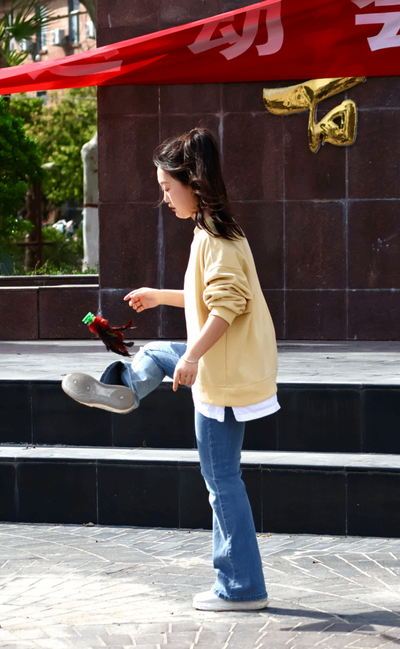 首先开展的是个人赛,踢花毽、花式捶丸和蹴鞠。广场上色彩斑斓的运动装束和跃动的身影交织出一幅绚丽多彩的画卷。观众的视线聚焦在运动员们的跳跃和奔跑之问,运动员们脸上洋溢的笑容让整个广场充满了生机和活力。