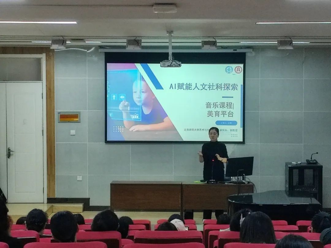 学术报告厅开展“AI赋能人文社科探索·音乐课程|美育平台”讲座。副院长王聚伍、王新,以及教务办、基层教学组织负责人、骨干教师、音乐教育专业学生和兄弟院校教师代表等参加此次讲座。