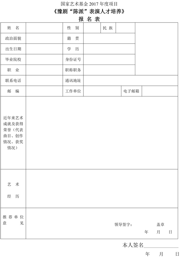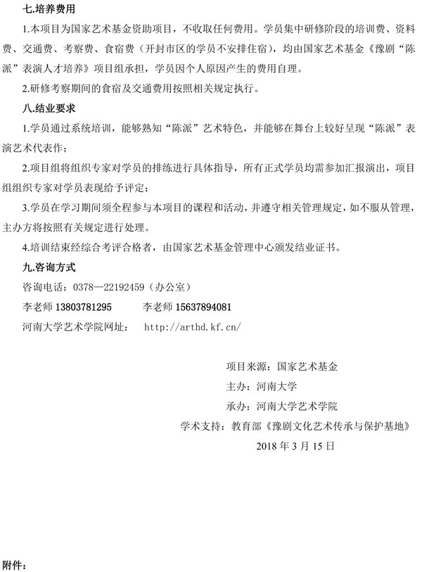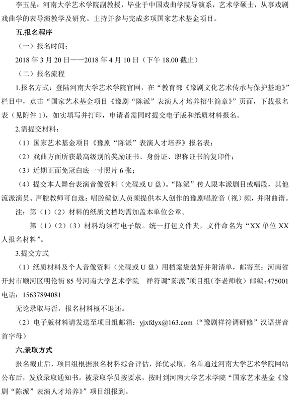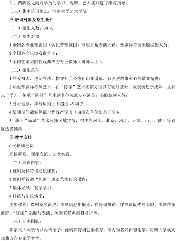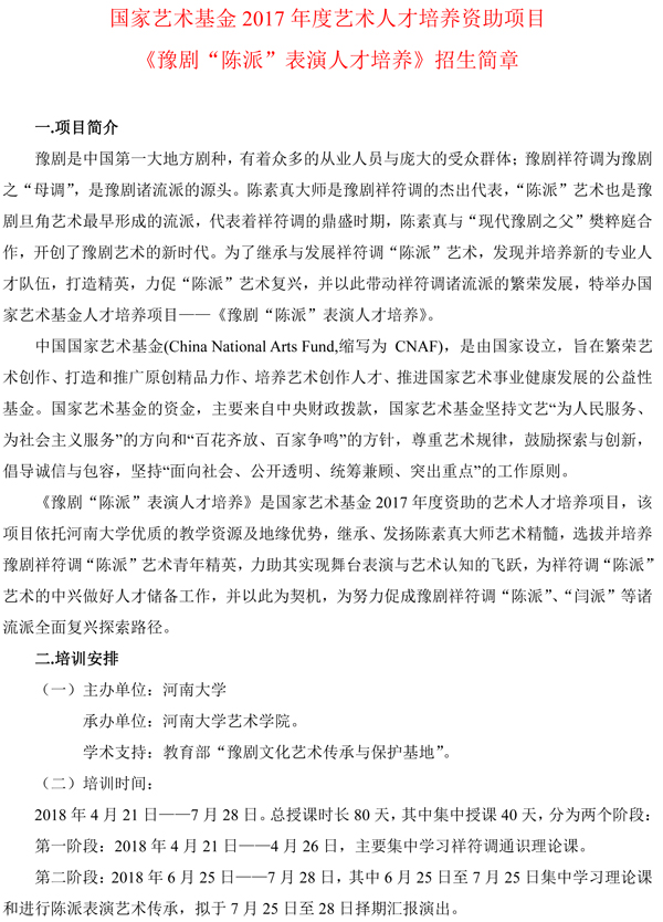 国家艺术基金2017年度艺术人才培养资助项目《豫剧“陈派”表演人才培养》招生简章