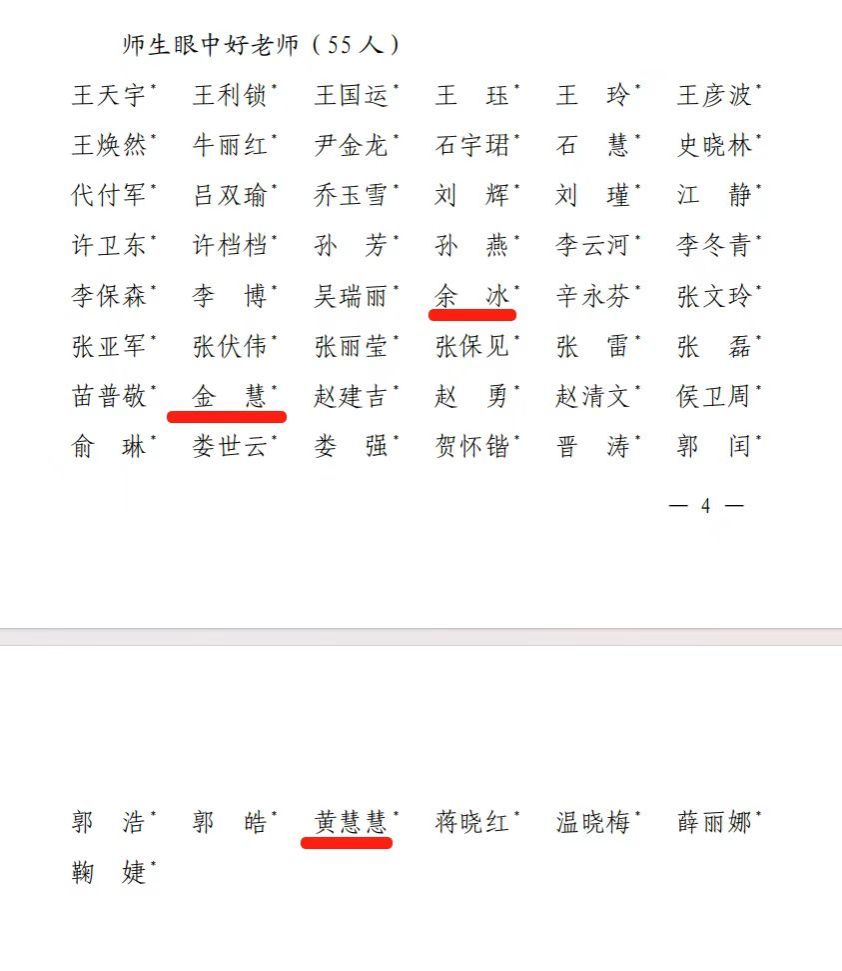 教师司岩、王计鹏分别获评征文一等奖、三等奖,学生张瑶、冀怡锦、彭嘉沛分别获评征文二等奖、优秀奖;王志国、徐晏、韩梅、赵瑞新等获得视频作品二等奖;黄慧慧、余冰、金慧获评“师生眼中好老师”称号;教工第二党支部师德师风建设案例获评优秀工作案例;国产色情