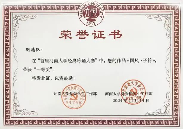 原创参赛作品《国风·子衿》、《潭头潭头》分别荣获一等奖、二等奖。