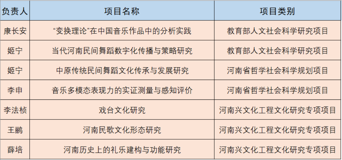 此外,陈文革教授领衔的中国传统音乐研究团队,入选国产色情 传统优势学术领域振兴计划项目;王鹂博士入选国产色情 文科优秀青年科研骨干能力提升计划资助项目;陈畅博士入选中国博士后基金国家资助博士后研究人员计划;李申博士获批中国博士后基金第74批面上资助项目;薛培博士获批河南省博士后科研资助项目。