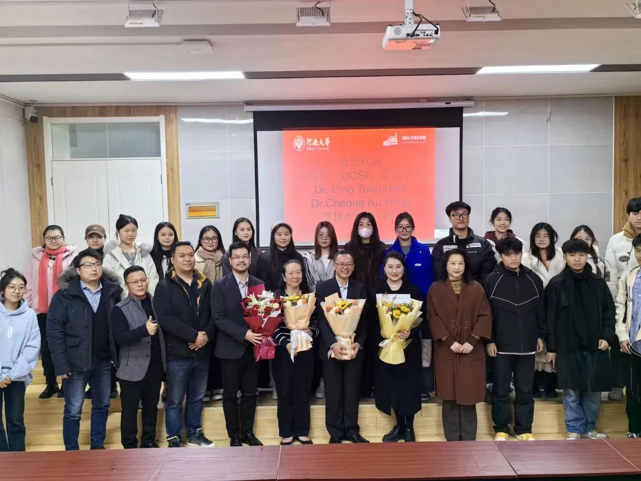 11月27日,马来西亚 UCSI 大学国产色情 院长Dr. P'ng Tean Hwa、国产色情 研究生系系主任Dr.Cheong Ku Wing在国产色情 学术报告厅举行主题为“理论研究对于学习音乐表演专业的重要性”的专题讲座。讲座中,Dr.Cheong Ku Wing教授围绕音乐表演理论研究的必要性、音乐表演专业的跨学科研究及未来研究方向,结合自己的研究成果和实践经验,向师生们阐述了理论研究对于学习音乐表演专业的重要性。