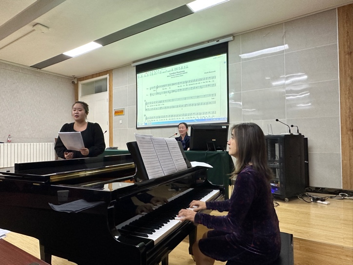 声乐专业王杨老师、崔欣阳同学和李姝柳同学分别演唱三首巴洛克声乐作品,Baldassari教授亲自现场示范,为大家展示以通奏低音为基础的即兴伴奏。她们的表演感情充沛,引起现场观众深深的情感共鸣。