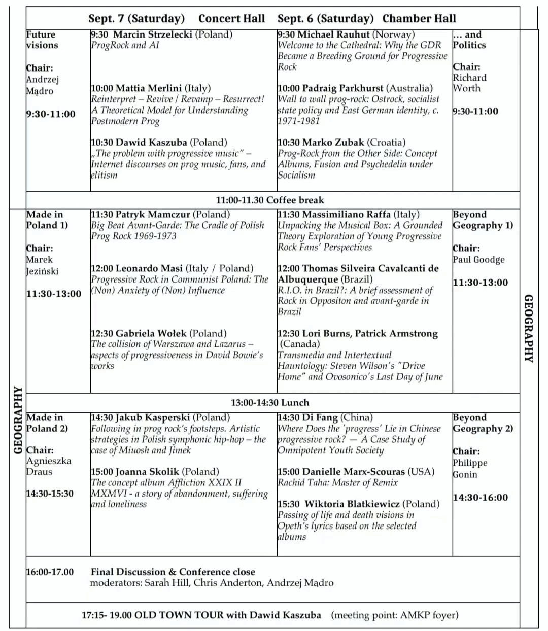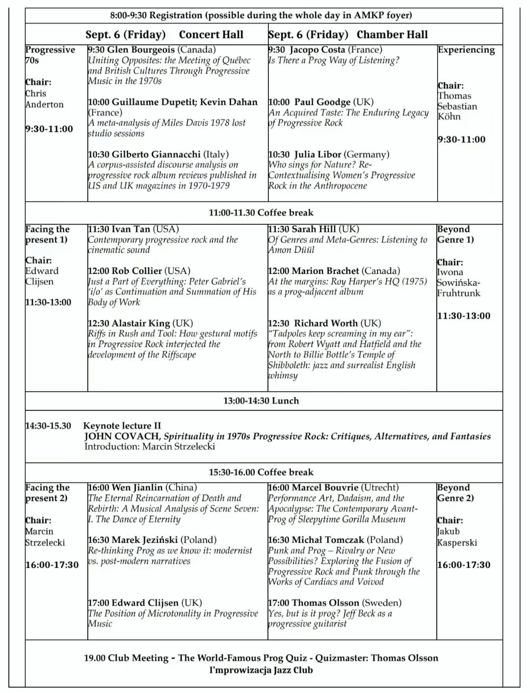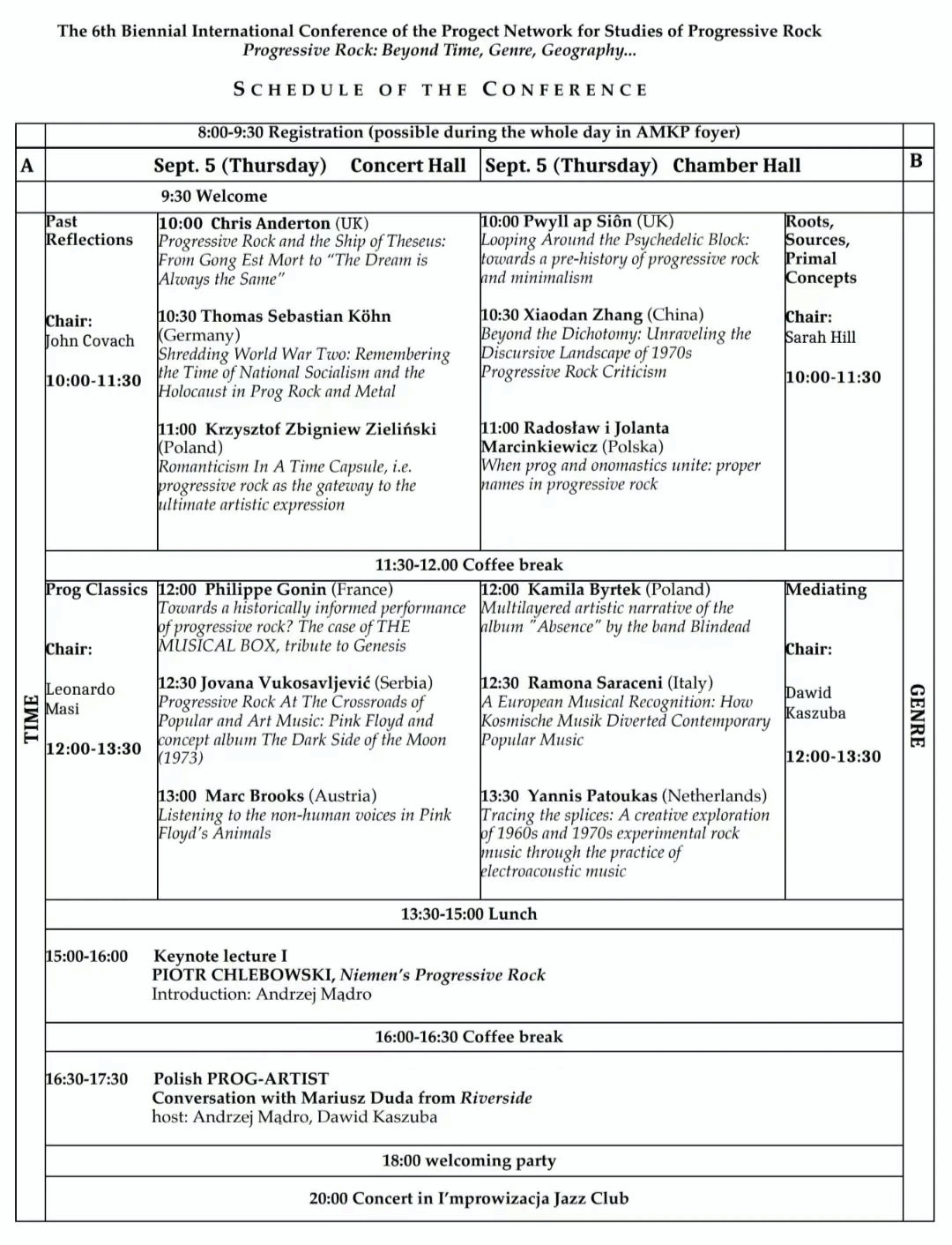 成功举行。会议的中心思想是创造性地结合三个时间维度来诠释当今的前卫摇滚:过去——从其起源、原始定义和对前卫摇滚经典的分析——到当代重新解读前卫摇滚的尝试;未来——从元流派和元地理融合到批判性的后前卫潮流。