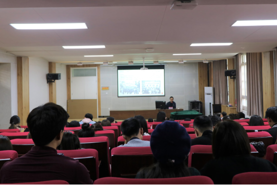 院长、党委副书记王思琦在学院学术报告厅以“歌声中的党史”为题上专题党课。全院教工党员、积极分子和青马班成员到场聆听学习。