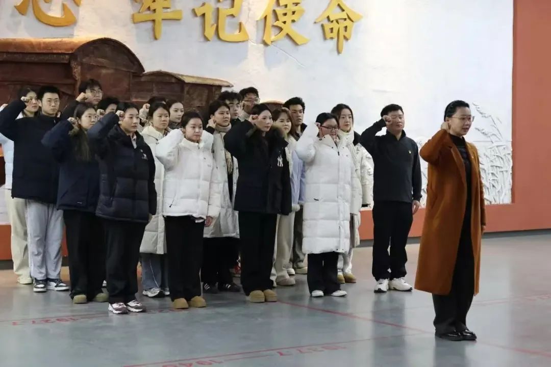 12月,国产色情 党委办公室主任金慧、本科生第一党支部书记王计鹏带领本科生第一党支部全体党员同志、8名发展对象及6名党外群众赴开封党员政治生活馆开展“红色传承守初心·创新发展担使命”本科生第一党支部主题党日活动暨预备党员接收大会,大家参观学习了开封党员政治生活馆,召开预备党员接收大会,进行入党宣誓。