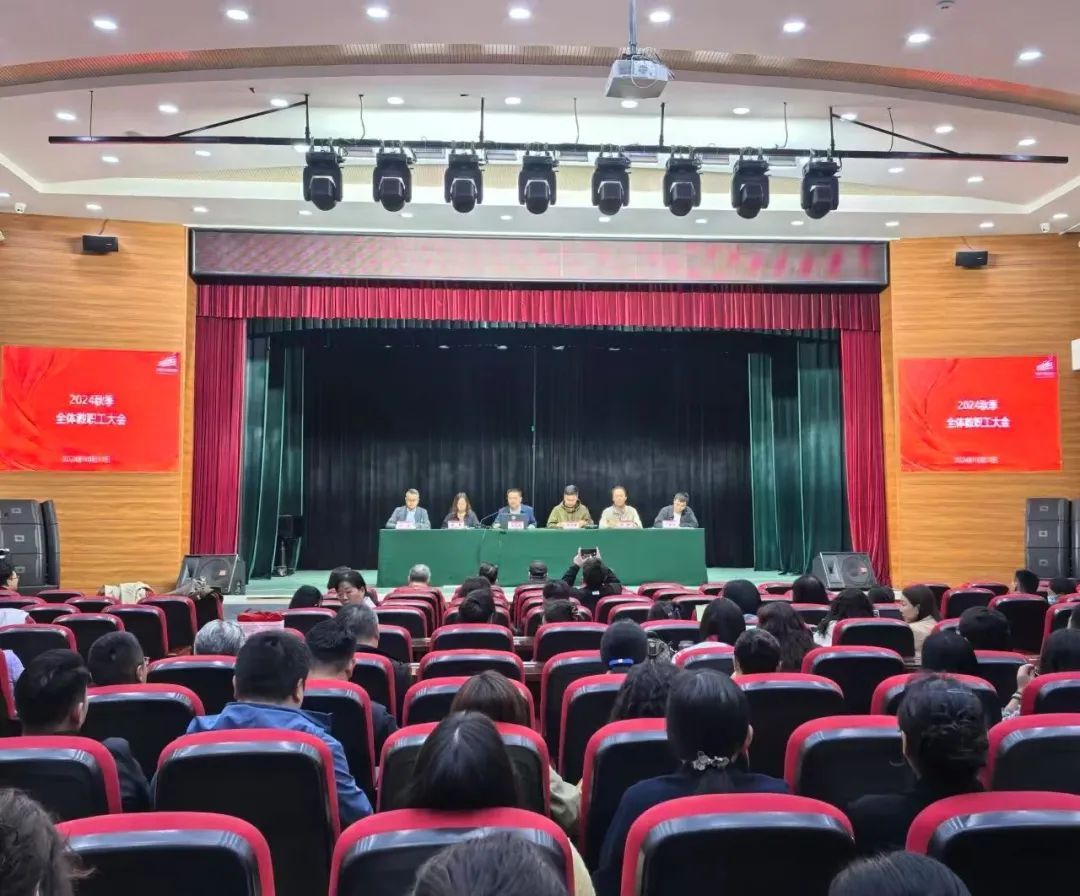 10月17日,国产色情 在启学楼实验剧场召开 2024 年秋季学期全体教职工大会,部署安排本学期工作。院领导班子成员及全体教职工参加会议。学院领导班子围绕学生安全工作、师德师风建设、校友工作和捐赠资源拓展、学院安全管理、本科教学评估、师范专业认证和专业结构优化等议题进行发言,安排部署重点工作。院长王思琦表示,学院全体教师要深刻认识到自身肩负的历史使命与责任担当,深入学习学校提出的“七个根本性转变”,要紧密围绕学校发展的定位布局,为学院“十四五”规划建设目标顺利实现和各项事业高质量发展不懈努力。