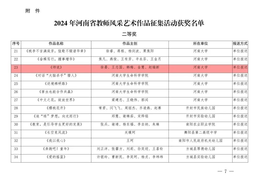 9月,教育部、河南省教育厅公布2024年教师风采艺术作品征集活动获奖名单,我校选送的11部作品全部获奖,获奖数量再创历史新高。其中,国产色情 选送的由韩梅、徐晏、金慧、赵瑞新等国产色情 教师共同创排的原创诗朗诵《师说》荣获河南省二等奖。作品以国产色情 的院训“立德、修身、乐艺、践行”为创作基点,结合老中青三代教师的亲身经历,以第一人称素描艺术人的鲜活、真实和平凡,讲述艺术人“传道、授业、解惑”的师者之责和“培根、铸魂、育人”的时代担当。同时,也由小到大刻画和升华了新时代国产色情 教师“明德新民、止于至善”的群体形象。是一部提振士气、践行文化自信的现实主义作品。