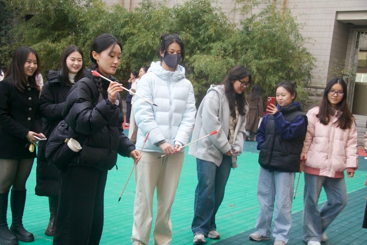 趣味运动会包含了投壶、跳绳、踢毽子赛等多个项目,每个项目都充满了挑战和激情。本次运动会七十余人参加,不仅是对学生身体素质的全面检验,更是对学生们精神面貌和团结合作精神的集中展示。投壶,这一古老的游戏在今日焕发出新的魅力,它不仅考验着大家的技巧,更增进了彼此之间的默契; 跳绳,速度与节奏的较量,选手们手中的跳绳飞快地舞动,脚下的步伐轻盈而有节奏,汗水在阳光下闪烁,笑容在脸上绽放; 踢毽子,彩色的毽子在空中上下翻飞,就像一个个快乐舞动的精灵,承载、传播着大家的欢声笑语。