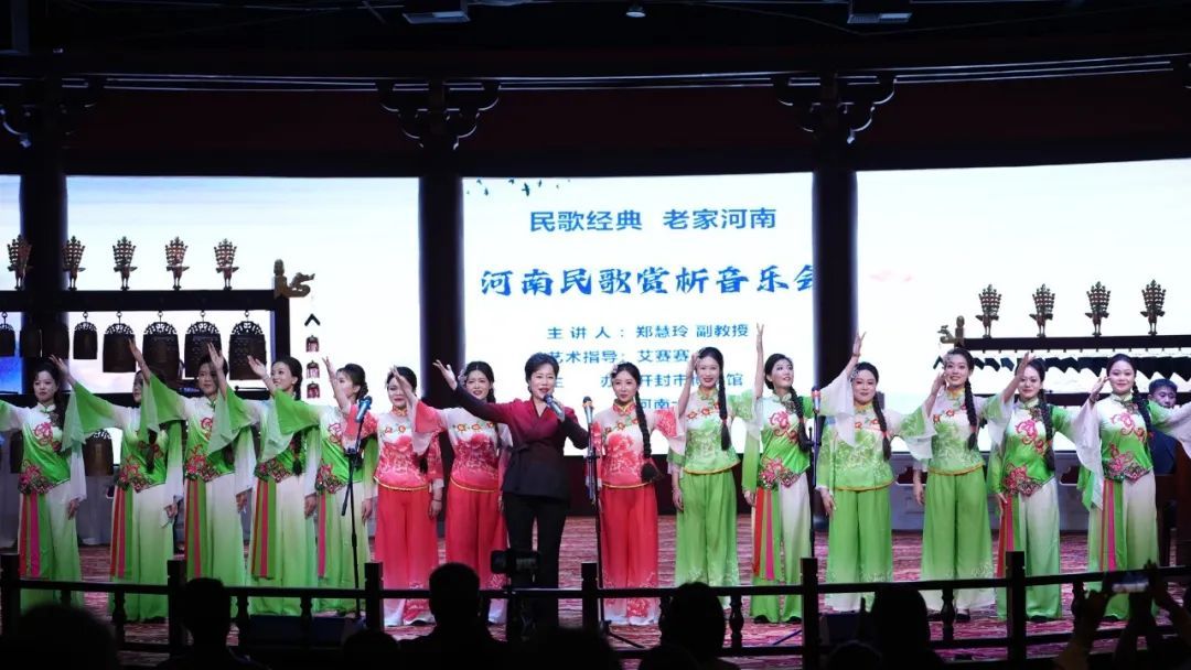 郑慧玲老师首先向观众介绍了河南民歌的基本概况。民歌是中华优秀传统文化的重要组成部分,是劳动人民集体智慧的结晶。河南民歌以其独特的方言歌词和音调旋律,成为河南音乐文化宝库中绽放独特光芒的宝贵文化遗产。河南民歌主要是汉族民歌,集中分布在大别山区、桐柏山区、南阳地区、洛阳崤山、熊耳山区和其他平原地区。河南民歌体裁多样、题材丰富,是河南人民日常生活、精神生活、各种情感情绪的集中体现。