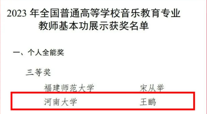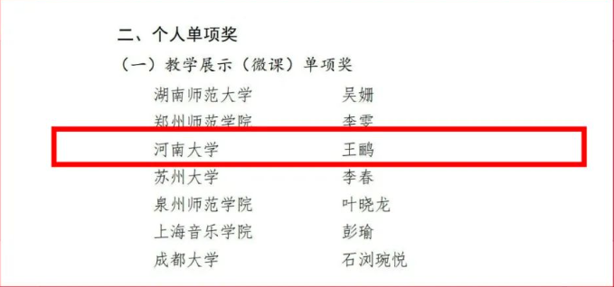 整个备赛与比赛过程让我深刻地意识到,一位教师的进步离不开前辈与集体的帮助。我相信在学校和学院的正确领导下,在老师们的团结互助中,通过不断总结和凝练,一定可以在学校美育面向高质量发展新阶段的全新教学改革实践中取得新的成绩,促进音乐教育专业发展。