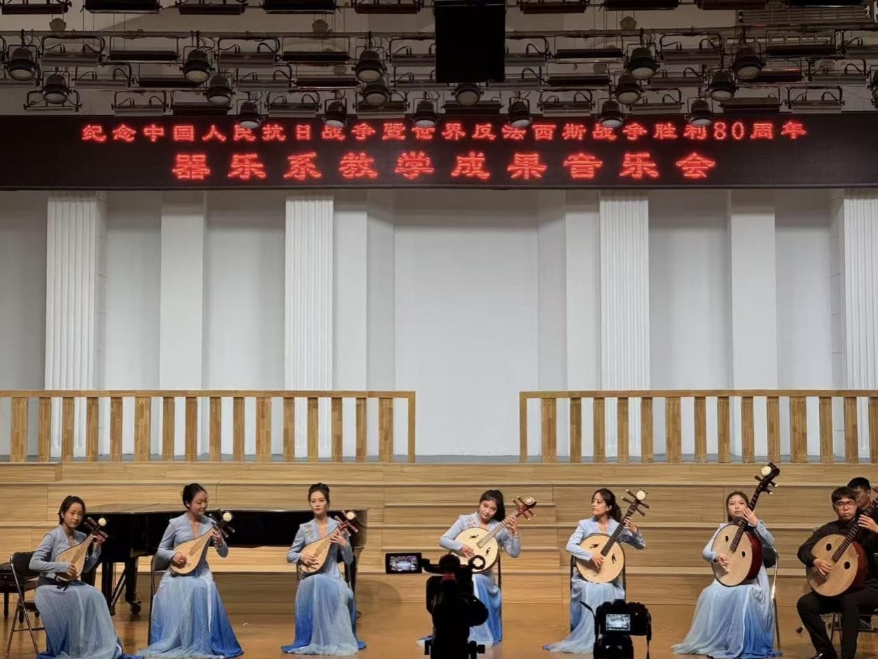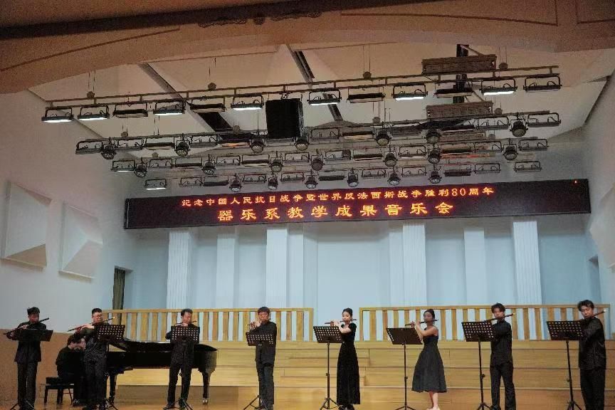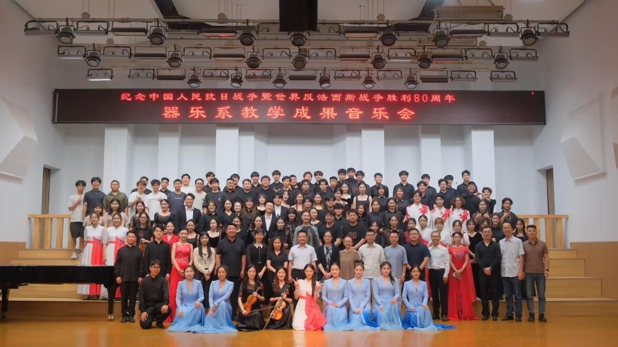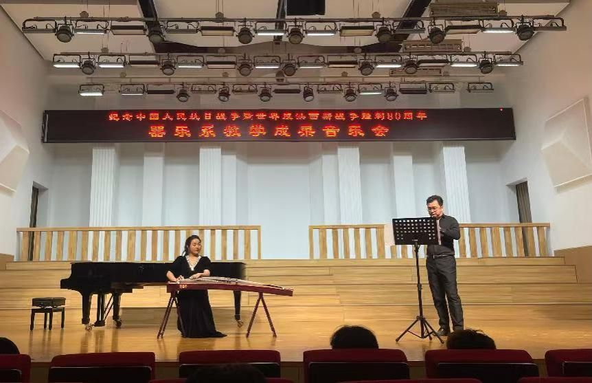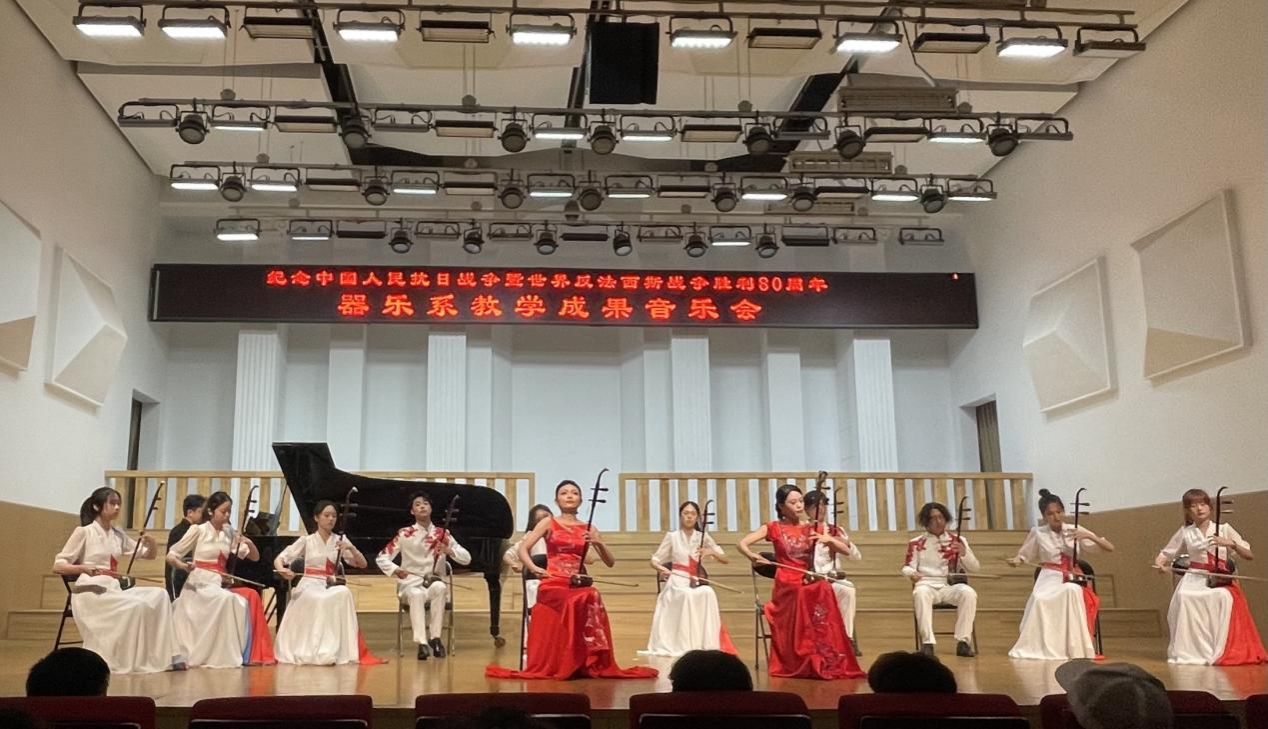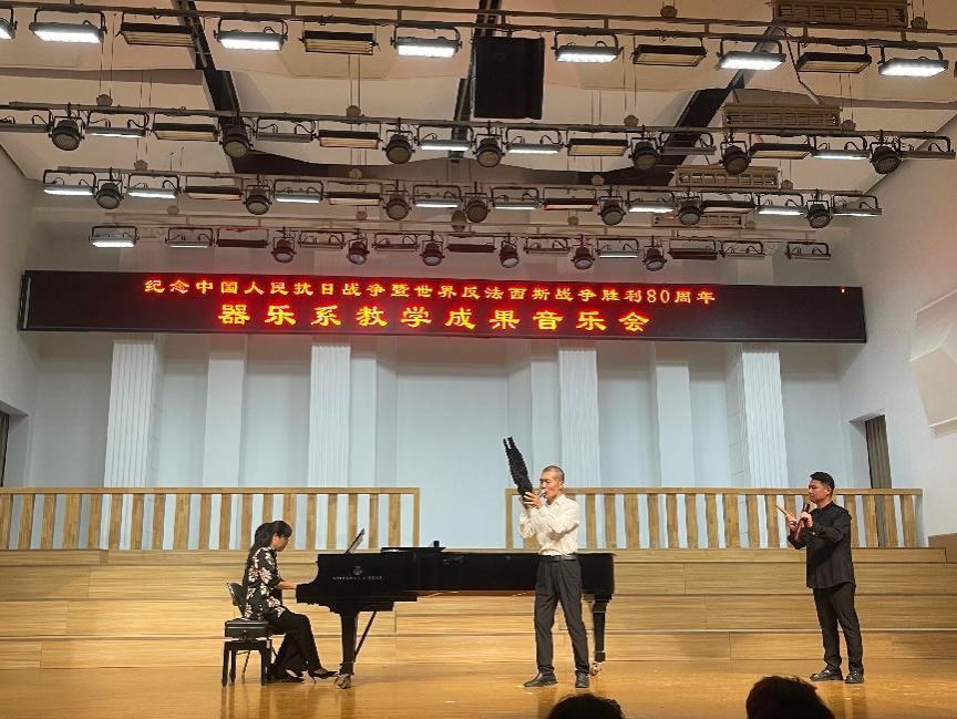主办、器乐系承办的“纪念中国人民抗日战争暨世界反法西斯战争胜利80周年系列音乐会(器乐专场)”在音乐厅成功举办。学院党委书记王志国、院长王思琦、党委副书记柴芳、副院长王新、王聚伍、姬宁等院领导出席了音乐会,现场座无虚席。