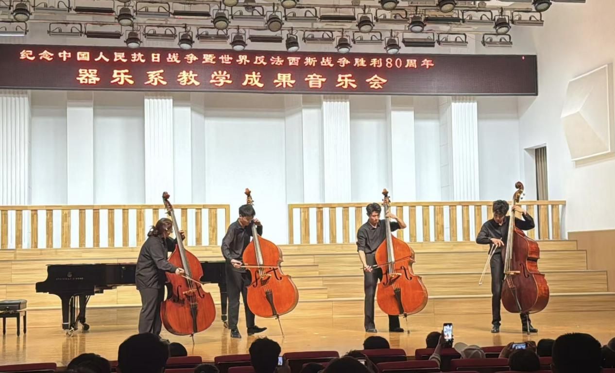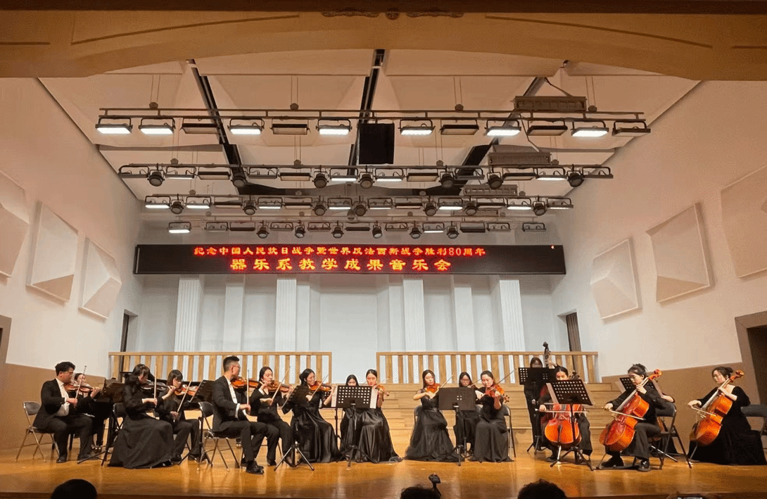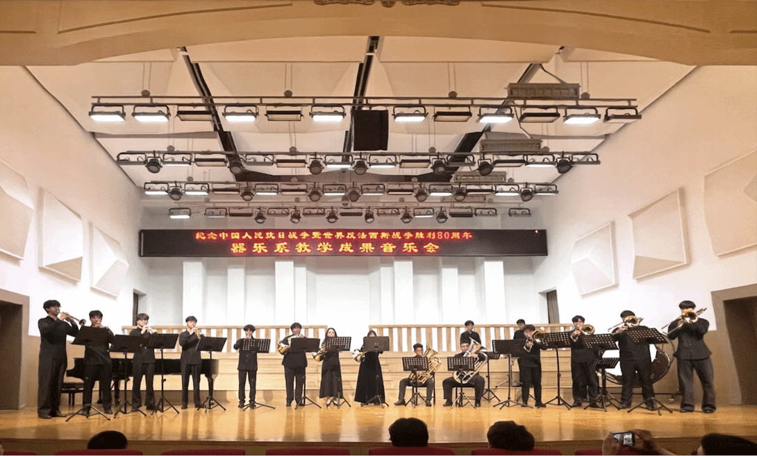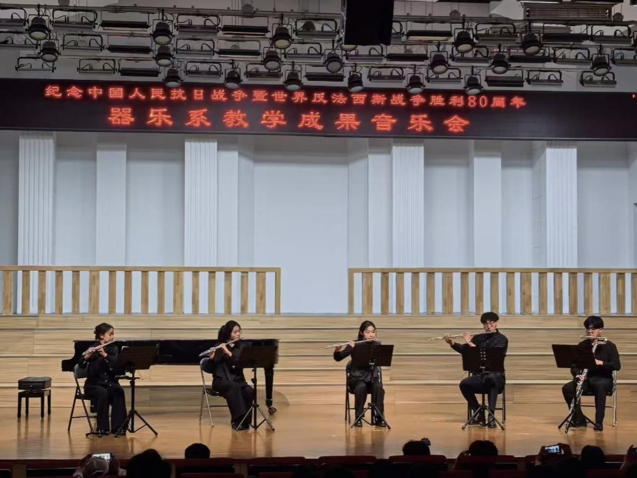 主办、器乐系承办的“纪念中国人民抗日战争暨世界反法西斯战争胜利80周年系列音乐会(器乐专场)”在音乐厅成功举办。学院党委书记王志国、院长王思琦、党委副书记柴芳、副院长王新、王聚伍、姬宁等院领导出席了音乐会,现场座无虚席。