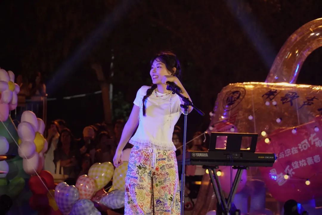 作为音乐节主力,青塔乐队贡献7首热力曲目:《蓝莲花》的演绎,引发全场大合唱;《一万次悲伤》的演唱,手机灯海随旋律起伏如潮。《New boy》将大家带入活泼欢乐的气氛,气氛再一次攀升,特别环节中,《恋曲1990》《光阴的故事》《童年》经典串烧勾起集体回忆,主唱郭孟缘与校友互动高呼:“铁塔湖畔的青春永不散场!”在《再见杰克》的鼓点中,我们肯定现在,点燃青春的热情。最后我们在《你要跳舞吗》的旋律中,感受音乐的欢乐与节奏,在欢呼声中结束本次的草坪音乐节!