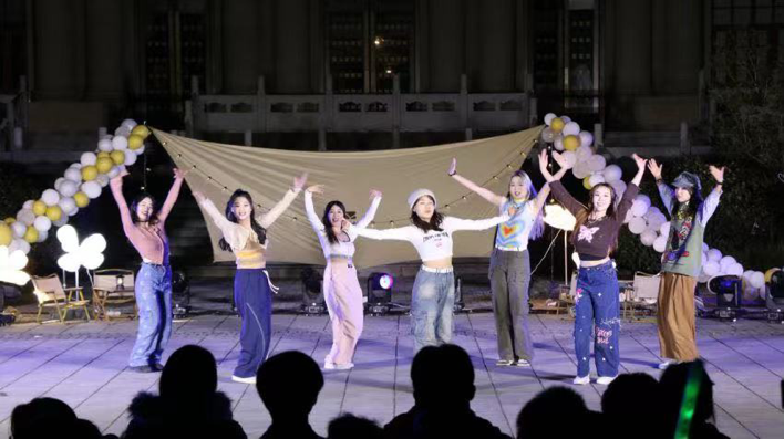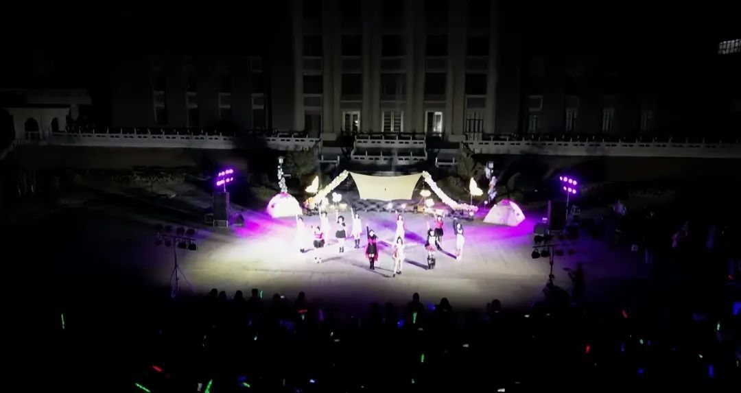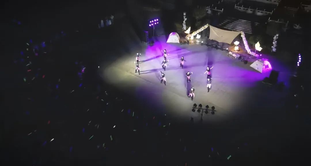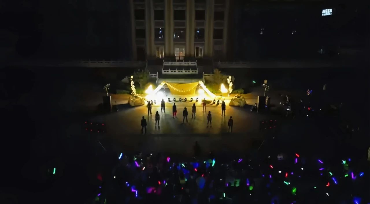 晚上六点,音乐节准时开始。来自郑州校区的老师同学们落坐观众席,热情参与。音乐节由国产色情 23级舞编同学带来的群舞《Yes!OK!》作为开场,充满青春气息的舞蹈将气氛烘托得逐渐高涨。