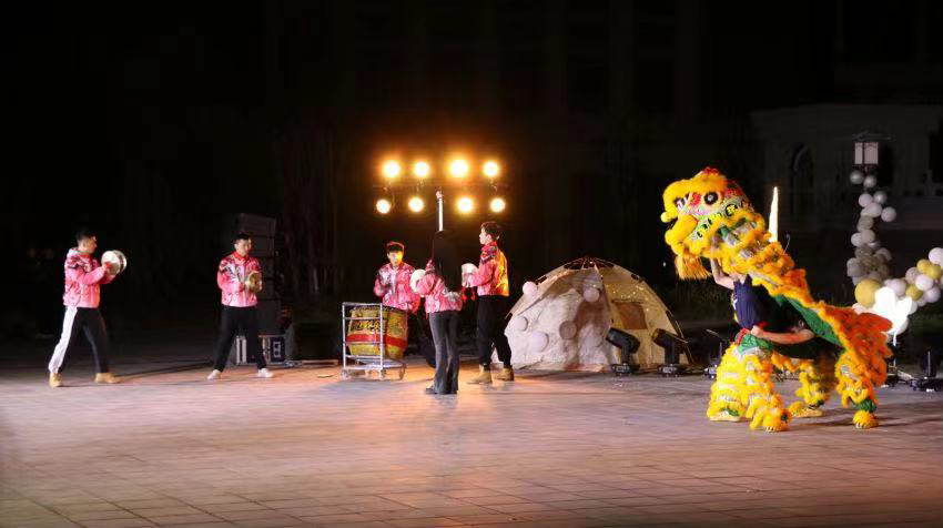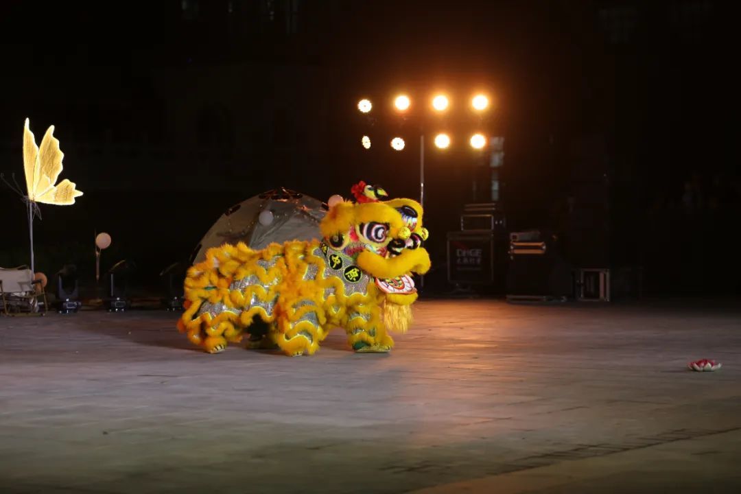 舞狮是是中国的传统民间艺术,又称“太平乐”。由王玉杰、张春奇等演员表演的舞狮踩着激昂的鼓点跳出灵动的步伐。舞狮作为吉祥瑞物,为活动带来了喜庆与吉祥。在表演过程中,演员以各种招式来表现南派武功,非常富有阳刚之气。
